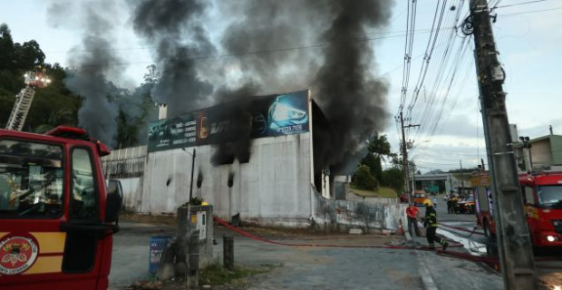 Incêndio de grandes proporções atinge loja de autopeças em Blumenau